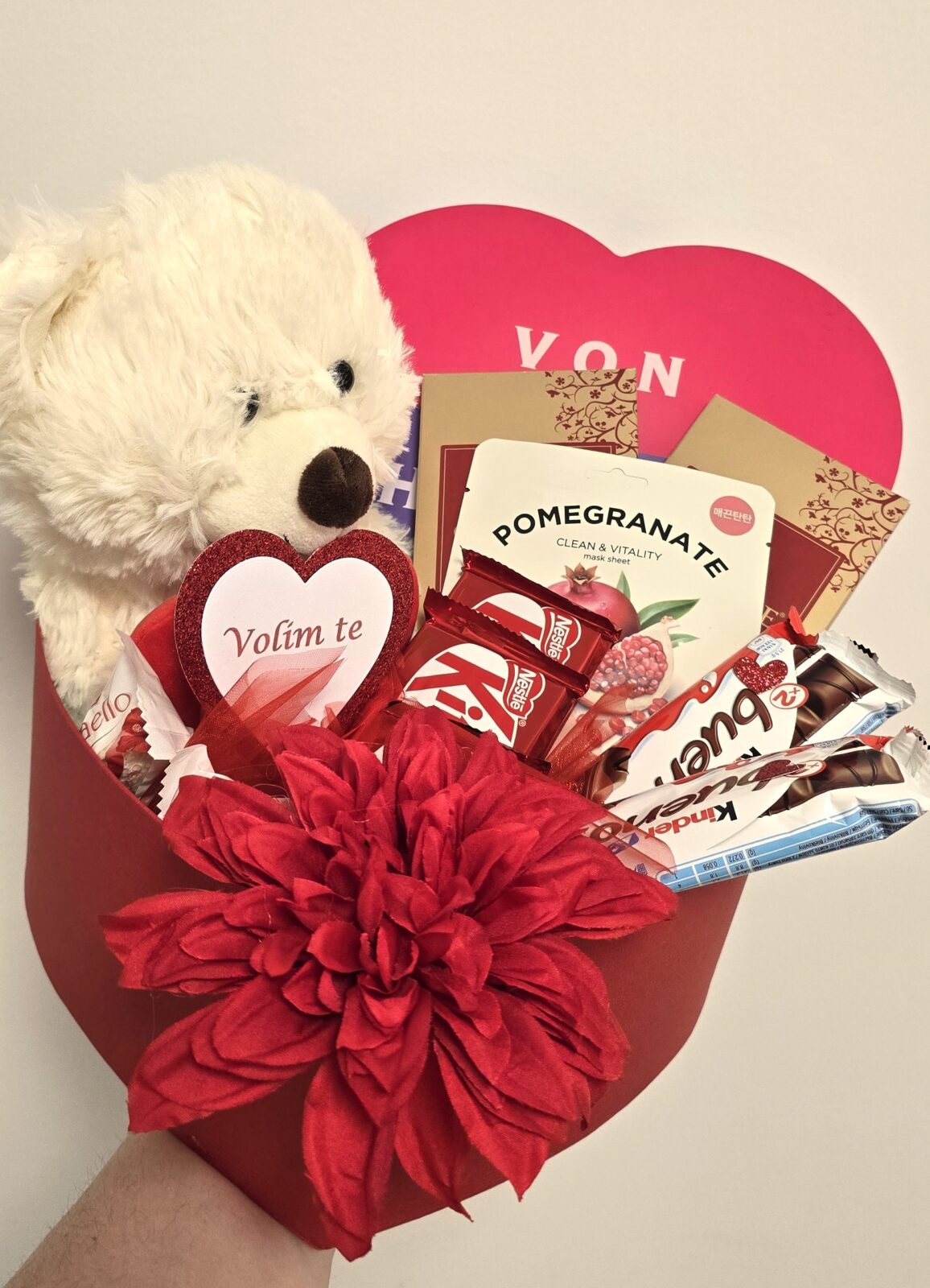 Odabir kutije u obliku srca s medvjedićem i slatkišima oduševit češ baš svaku osobu nježnijeg spola