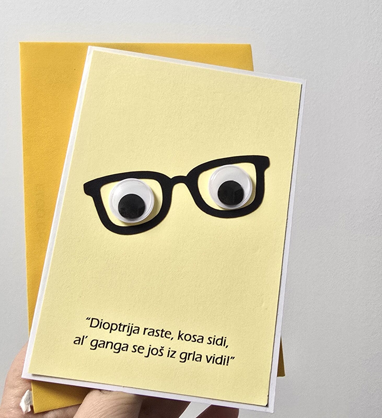 Čestitka dolazi sa kuvertom, zapakirana u celofan vrećicu.