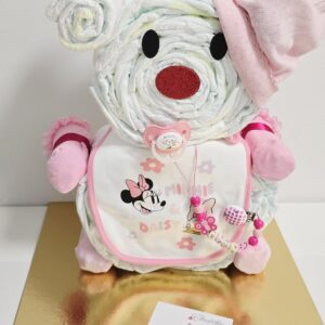 Sastoji se od jednokratnih pelena, tetra pelene, personaliziranog lanca za dudu, zvečke i plišane igračke.